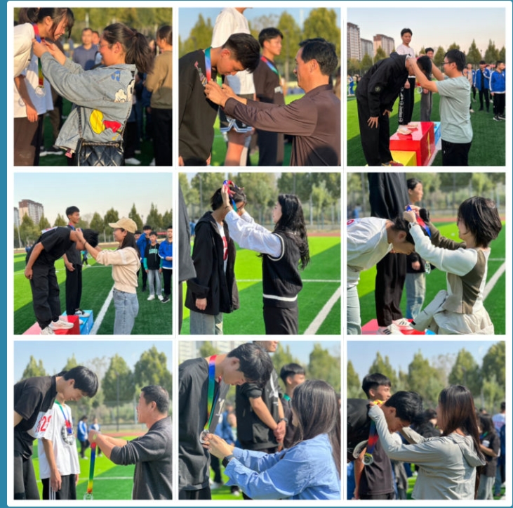 各班班主任为获奖学生颁奖并进行合影留念,为本届运动会画上圆满的句号。
