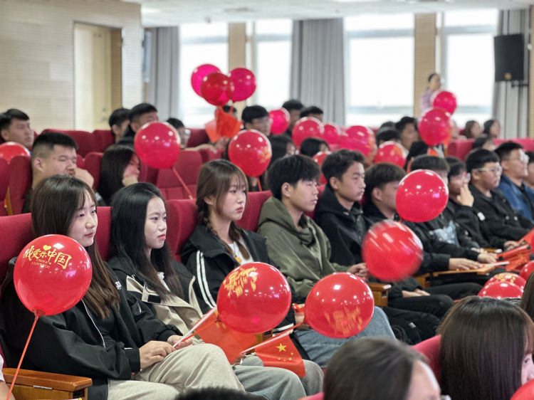 联欢会现场气氛热烈、节日精彩纷呈,以热情的歌曲《最炫民族风》开场,热情洋溢的歌声,瞬间点燃全场氛围;歌曲《白山茶》、《妈妈的话》等优美动听的旋律充满整个校园;朗诵《满江红》豪情壮志,彰显拳拳爱国之心。