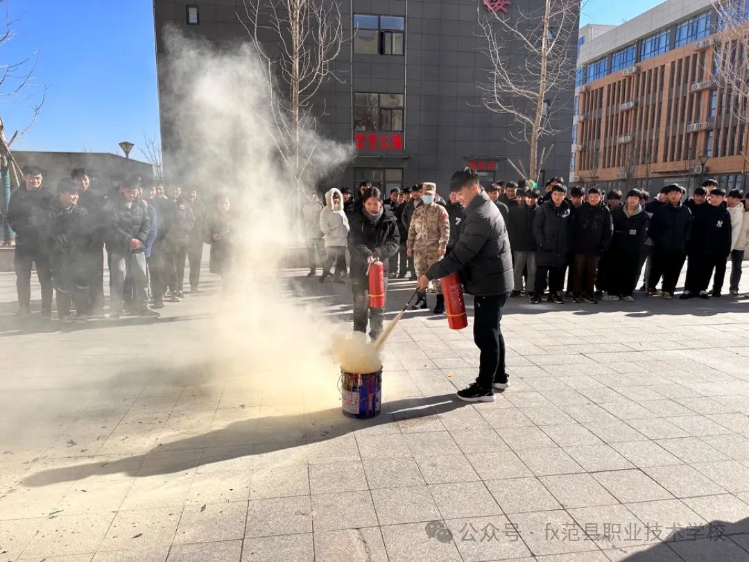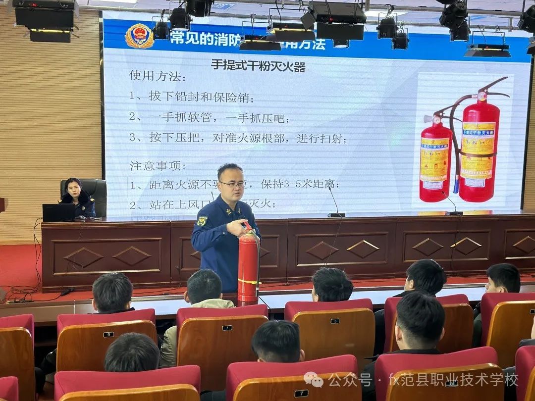 为切实加强学校消防安全工作,提高广大师生消防安全防范意识、安全疏散与自救能力,保障师生生命安全,打造平安校园,1月22日,范县职业技术学校邀请范县消防大队副大队长王利行一行三人到我校开展消防专项培训与演练活动。
